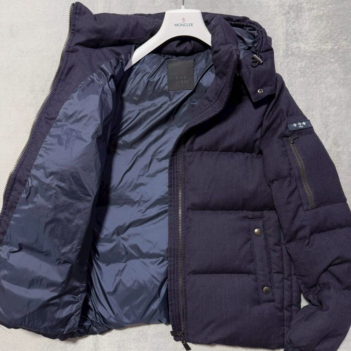 - M相当/サイズ02★TATRAS タトラス ダウンジャケット パーカー 着脱フード 2way ブルゾン Wジップ ウール ネイビー メンズ アウター