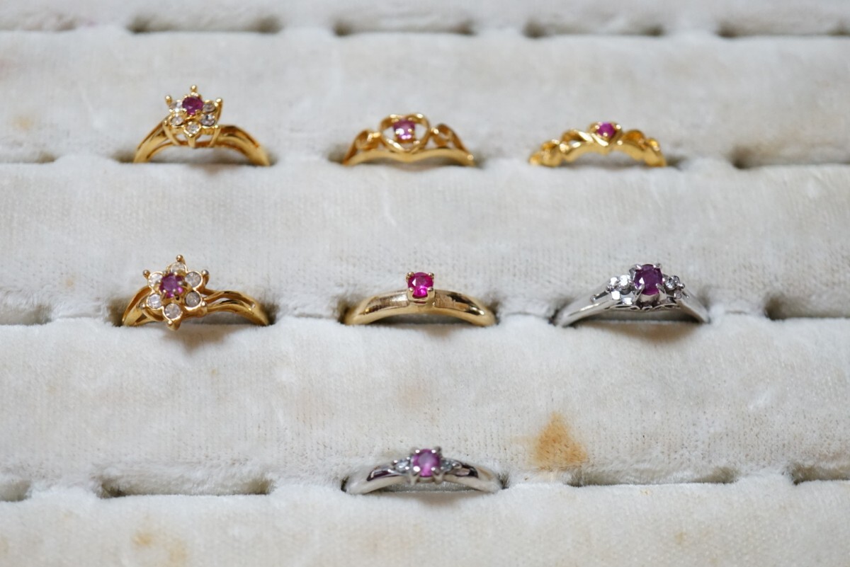- B2182 ルビー 宝石 リング 指輪 7点セット カラーストーン ヴィンテージ アクセサリー コランダム 大量 まとめて おまとめ まとめ売り