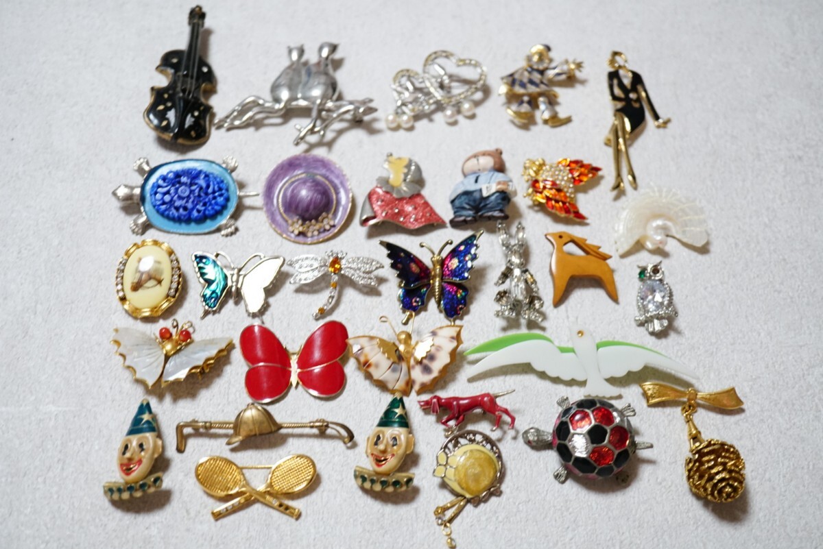 - C2042 ジャンク品 アニマル 昆虫 人像など 海外製含む ヴィンテージ ブローチ 30点セット アクセサリー 大量 まとめて おまとめ まとめ売り