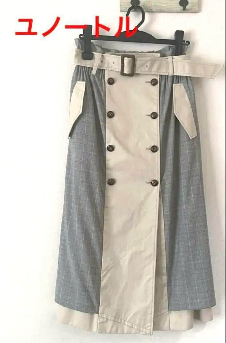 - タイトスカート ユノートル ギンガムチェック デザインスカート 巻きスカート風 重ね着風