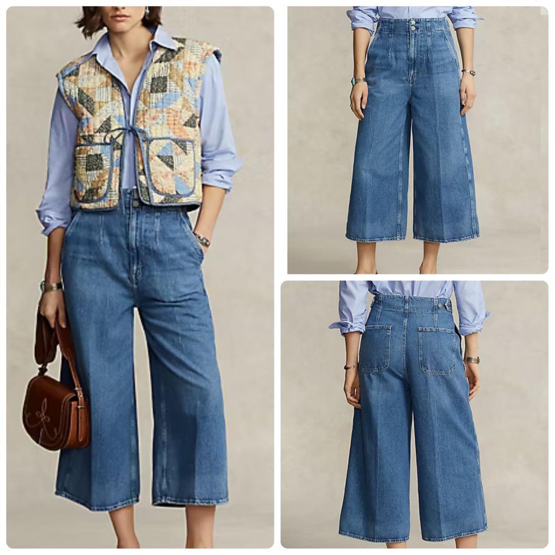> 23年モデル POLO by RALPH LAUREN ポロバイラルフローレン アジャスタブルライズ キュロットジーンズ ワイドデニムパンツ 25サイズ