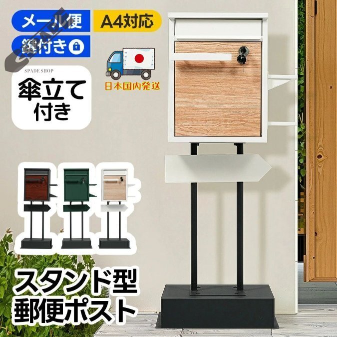 > 【国内発送】宅配ボックス 置き型 スタンド 投函口3つ ポスト一体型 複数投函 配達ボックス 鍵付き メ一ル便A4対応 ポスト(White)