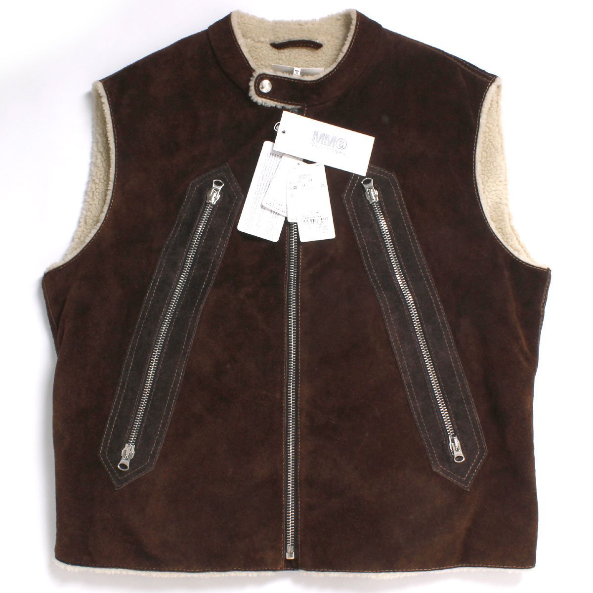 > 【タグ付・定価215,600円】MM6 AVP GILET 八の字 ベスト sizeM ブラウン S52FB0068 エムエムシックス スエードベスト ライダース