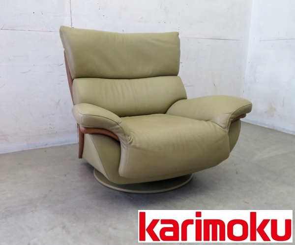 - ■P268■美品■カリモク/karimoku■チターノ/Chitano■牛本革■オーク材■1人掛けソファ/1Psofa■Z16■モダン■回転式■
