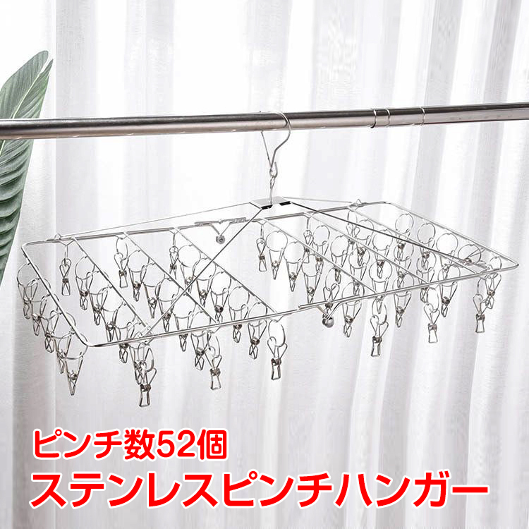 - 1円 ハンガー 収納 フック ピンチハンガー ステンレス 洗濯 バサミ ばさみ 52ピンチ 折りたたみ 角ハンガー 物干し ny314