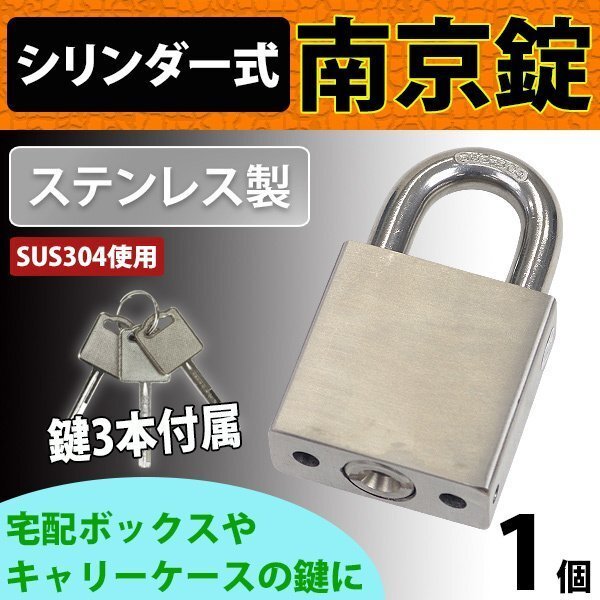 - 送料無料 シリンダー式 ステンレス製 南京錠 幅約50mm 1個 シャックル径約10mm 鍵3本付属 SUS304 オールステンレス ステンレス シリンダー