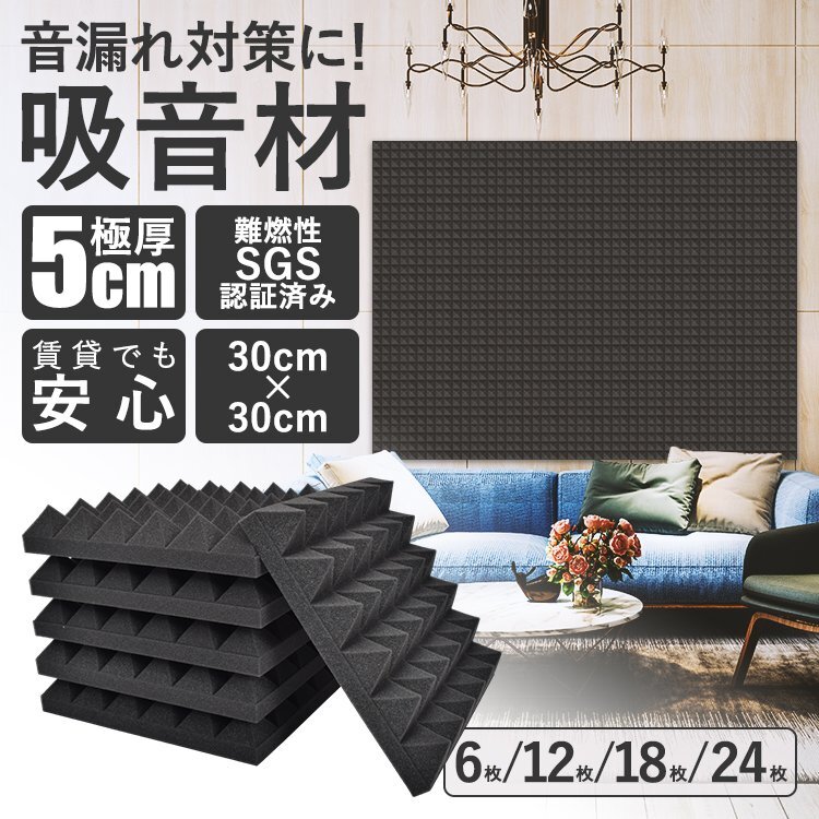 - 1円 吸音材 DIY 30×30×5cm 極厚 厚み5cm 高密度 ウレタンフォーム 壁 天井 吸音 吸音対策 楽器 スポンジ 消音 18枚 sg151-18