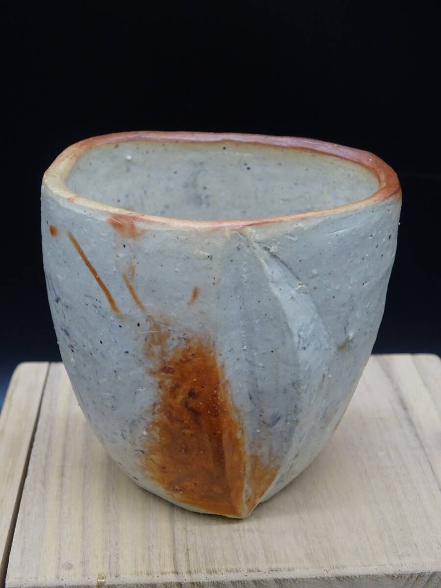 - 備前焼 人気実力作家 川端文男 備前市無形文化財 工芸会正会員★備前自然練込みぐいのみ 四方桟共箱、共布、陶歴付 茶道具