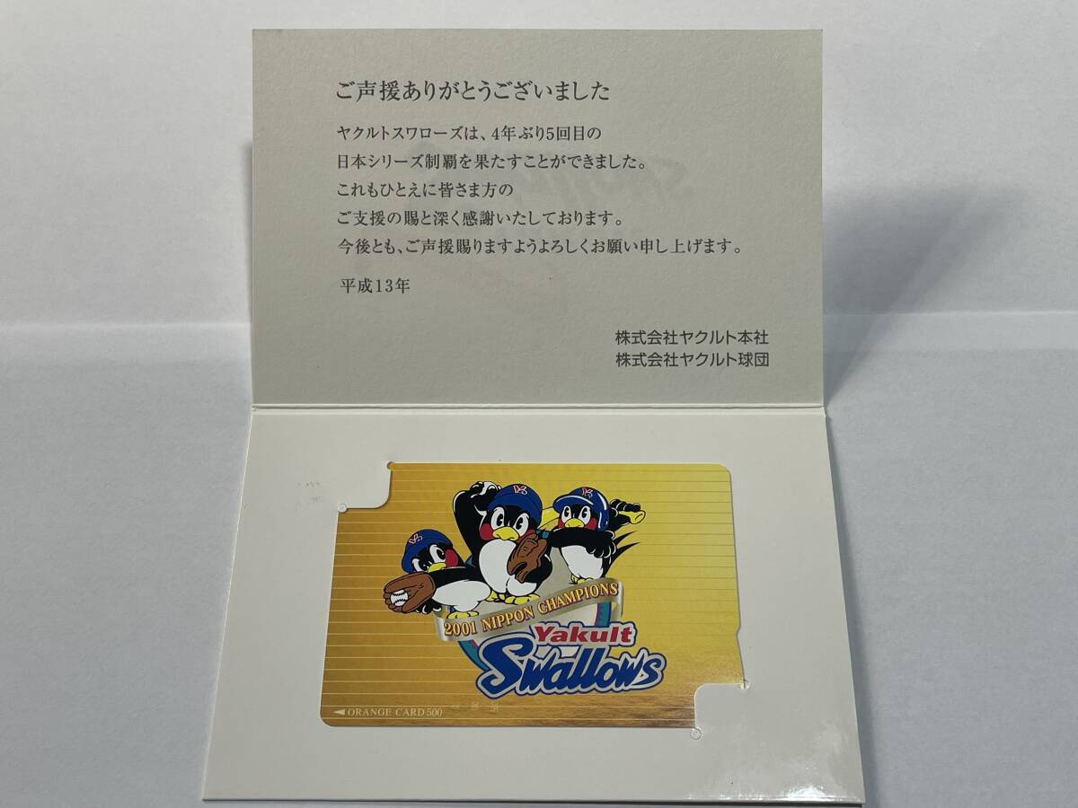 > JR東日本 オレンジカード 未使用 ヤクルトスワローズ つば九郎 2001年 日本シリーズ制覇 4年ぶり5回目 ヤクルト球団 500円 記念台紙付き
