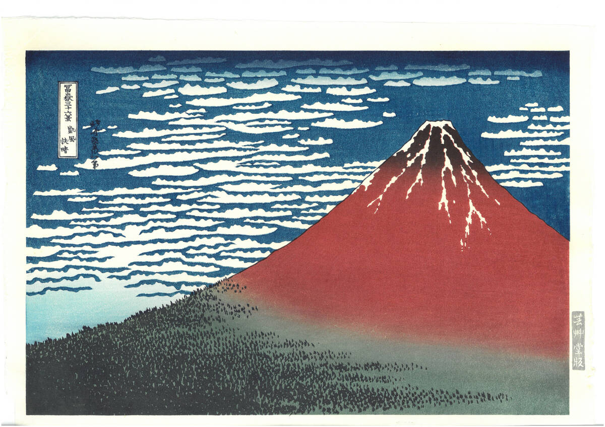 - 真作保証 葛飾北斎 木版画 富嶽三十六景 凱風快晴(赤富士) 初版1831-33年(天保2-4年)頃 やはり北斎の木版画は凄い!!