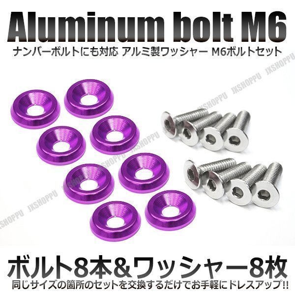 - 送料無料! M6 25mm ナンバーボルトセット [パープル] アルミ製 お手軽ドレスアップ ワッシャー×8 ボルト×8 カスタム 汎用 エクステリア