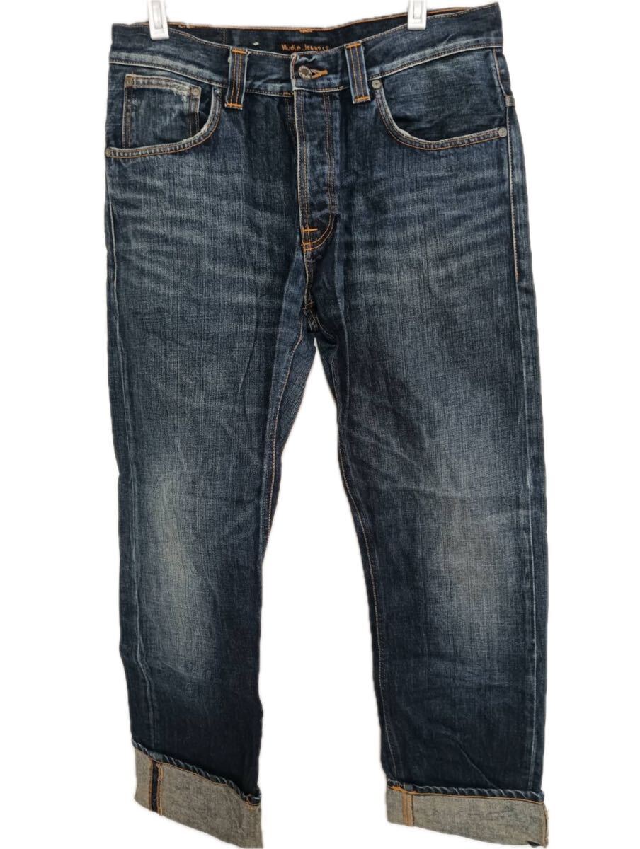 > Nudie Jeans ヌーディージーンズ EVEN STEVEN 33×32 メンズ デニム ジーンズ ストレート セルビッジ インディゴ ブルー こなれ感 美品