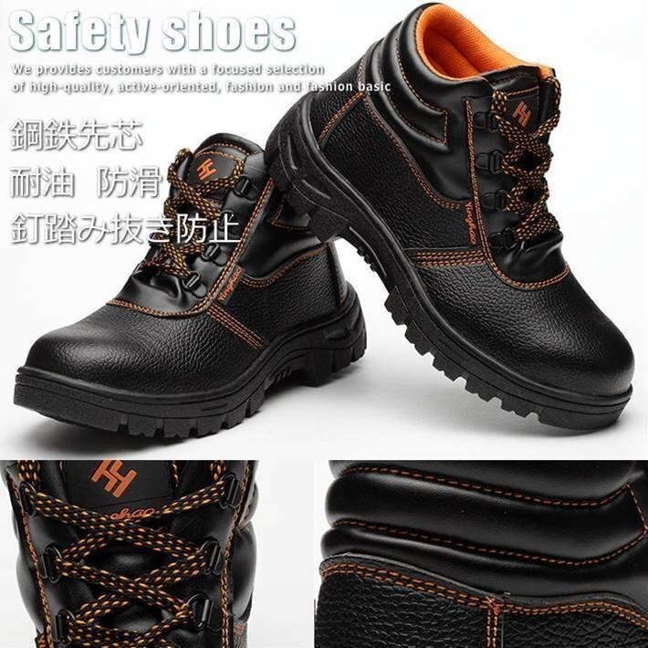 - 安全靴 鋼鉄先芯 スニーカー ブーツ シューズ メンズ 釘踏み抜き防止 靴 耐油 防滑 7995363 【A】 ブラック 42 26.0cm 新品 1円 スタート