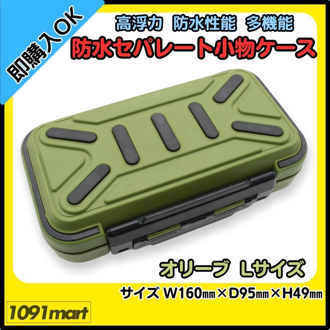 - 【送料無料】防水セパレート小物ケース オリーブ Lサイズ タックルボックス ツールケース 小物ケース 釣具 小物収納 釣り針 ウキ止め