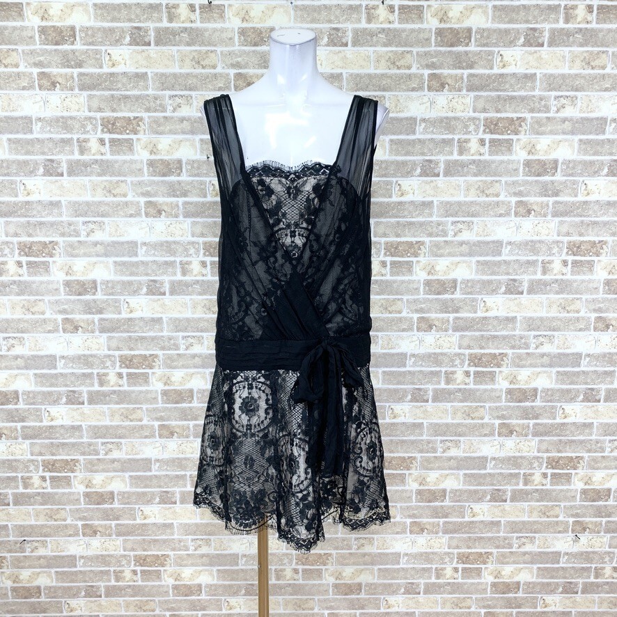 > 1円 ドレス GRACE Class ワンピース 36 黒レース中生地ベージュ 表地シルク カラードレス 発表会 イベント 中古15901