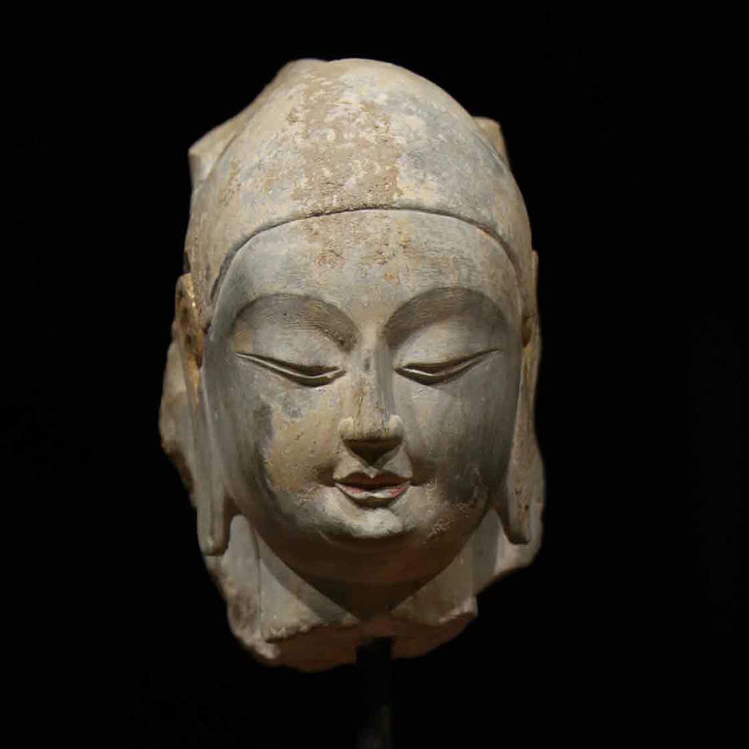 - ▼渡鶴羽▼H7195北斉時代 青石仏頭 仏首 青石細工彫刻★仏教古美術★仏像★細密細工★廃寺旧蔵★廃寺買出品