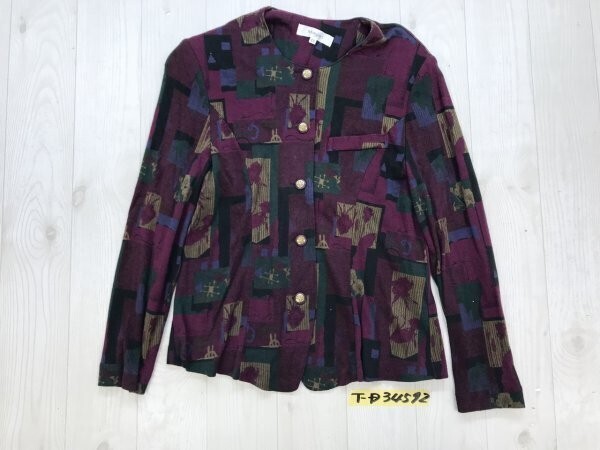 - Mayjan レディース 肩パッド ストレッチあり 総柄 レトロ カーディガン 11 赤紫・緑・ベージュ