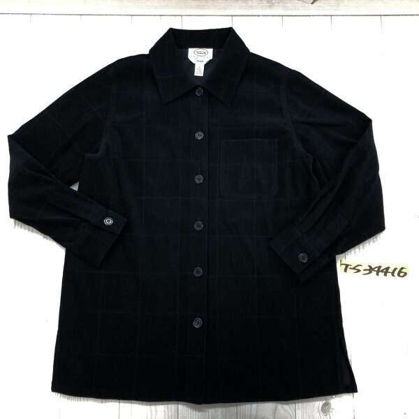 - TALBOTS タルボット レディース チェック ステッチ 起毛 長袖シャツ P 黒