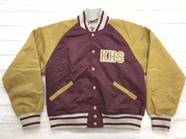 > カーニーハウス KEARNEY HOUSE レトロ アメトラ スポーツ 刺繍 スタジャン ブルゾン バーシティー ジャケット M バーガンディ/マスタード