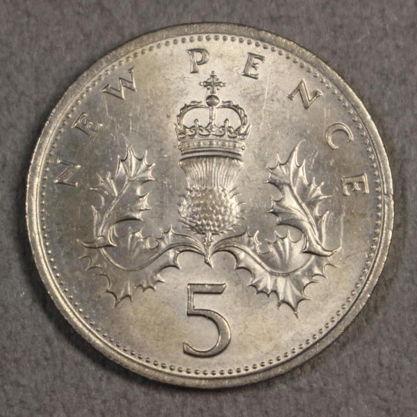 - イギリス 1977年〔 5ペンス硬貨 〕スコットランドの紋章 エリザベス2世 t0250