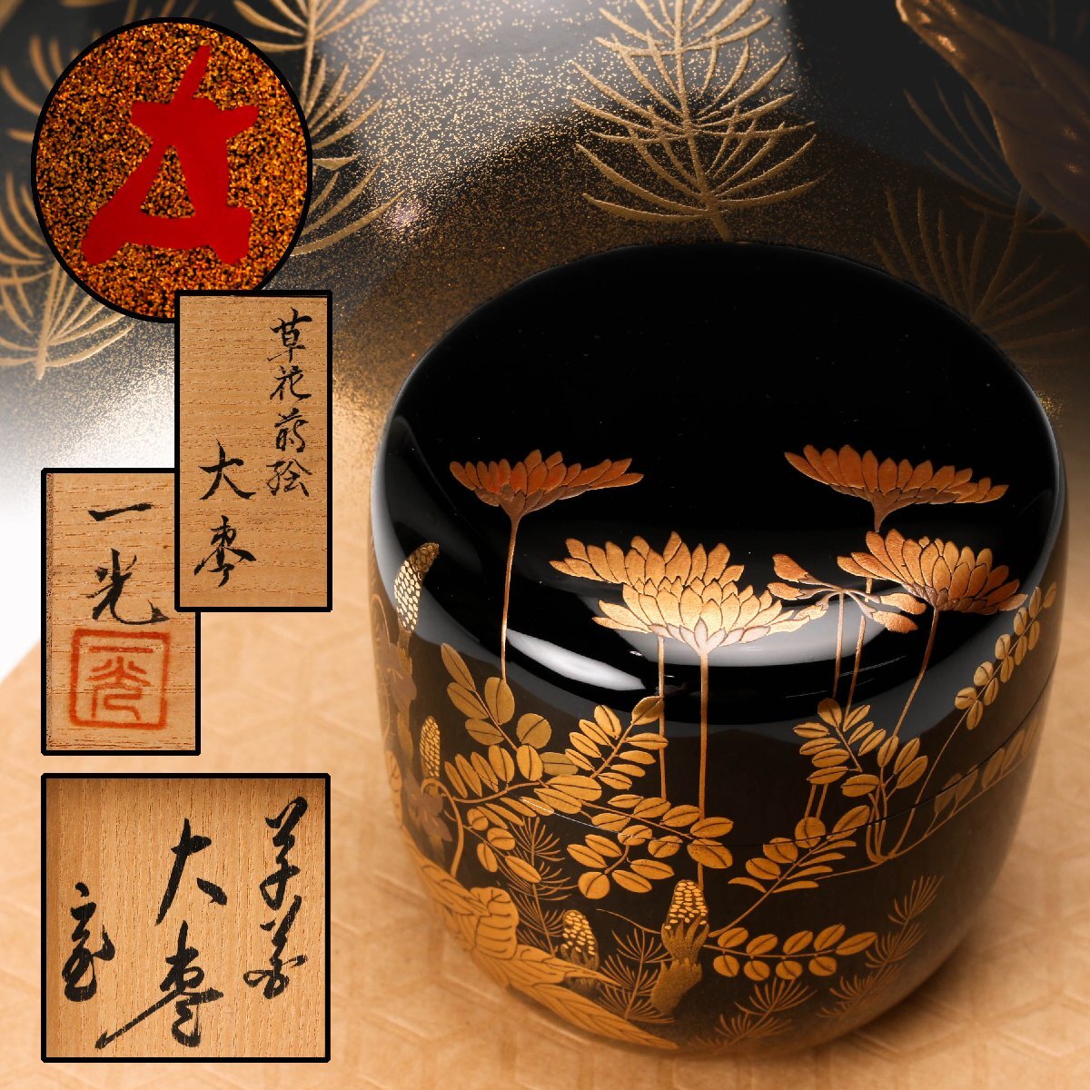 【佳香】清瀬一光 草花蒔絵大棗 花押 内梨地 裏千家十五代鵬雲斎(汎叟宗室)書付箱 茶道具 本物保証
