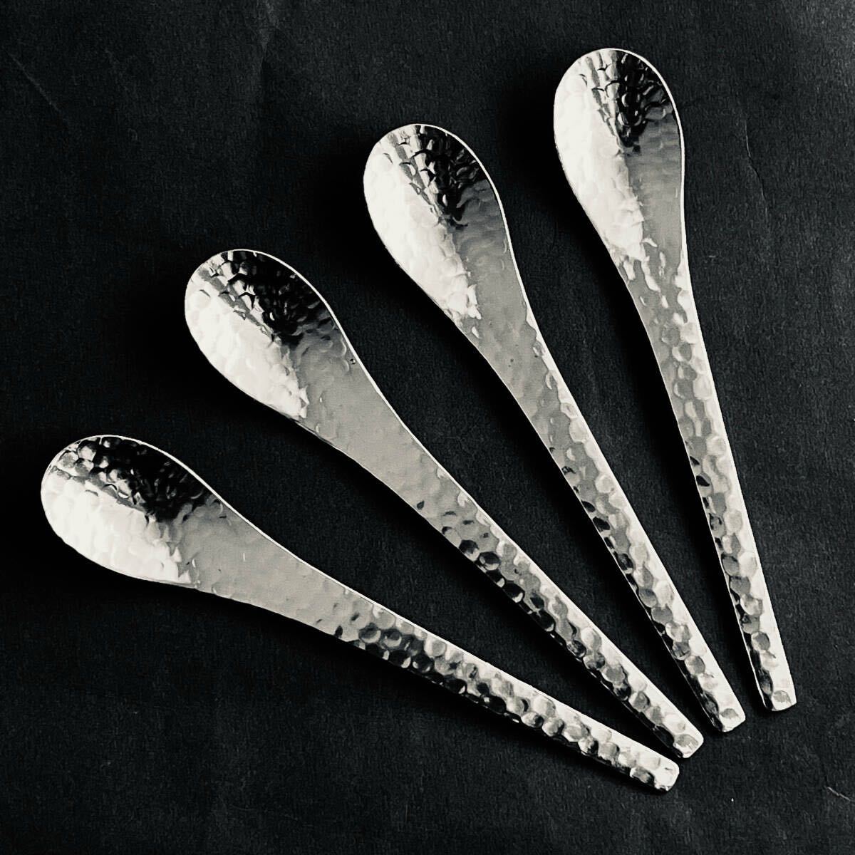 - 新品★銀鱗 槌目 コーヒースプーン ステンレス 4本セット 定価1100円★ティースプーン