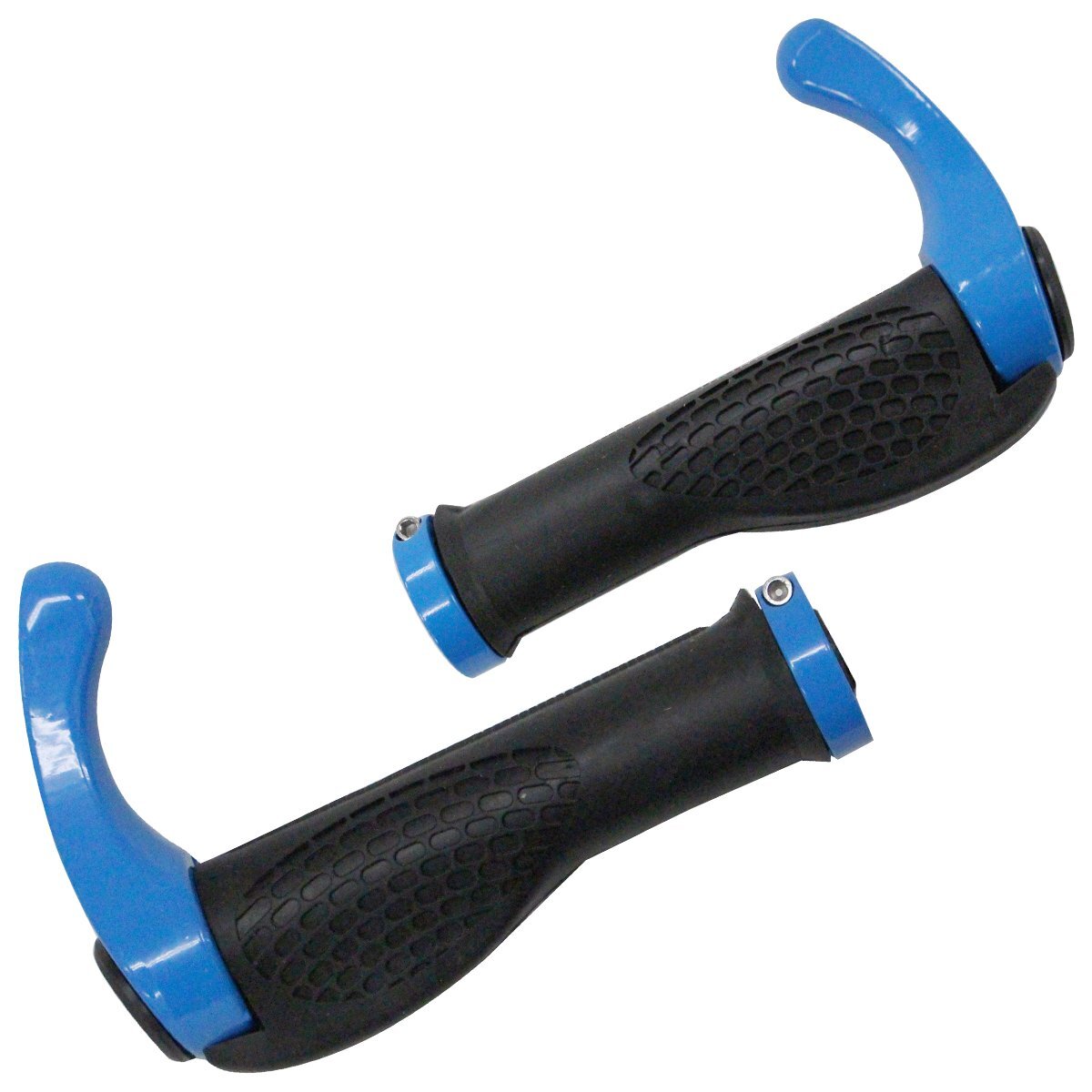 - 【送料380円】自転車 牛角 ハンドル グリップ 角度調整可 ブルー 青 バー エンド クロス バイク マウンテン ロード エルゴ 羊角 長距離