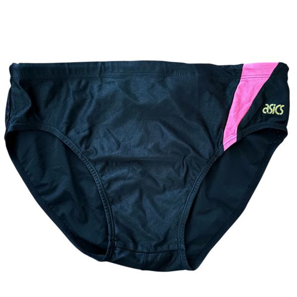 - 34アシックスasics男子競泳水着Oサイズ★AN-913★光沢黒ブラックピンク