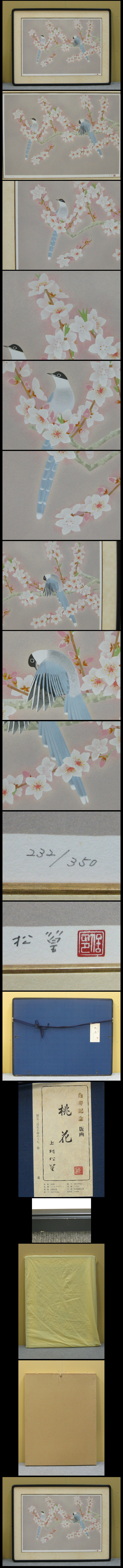- 【心庵】額装 上村松篁「桃花」花鳥図 15号/シルクスクリーン 直筆サイン 限定 紙タトウ付 SK125
