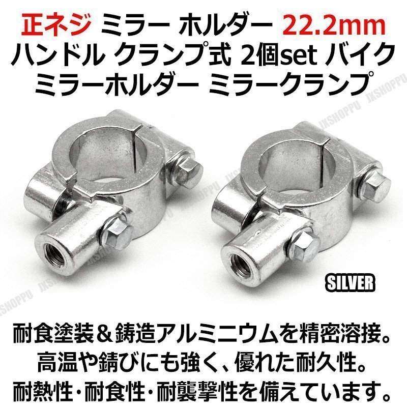 - 送料0円 ミラークランプ [シルバー] [M10] 2個セット 正ネジ ミラー ホルダー 22.2mm ハンドル クランプ式 ミラーホルダー バイク 汎用