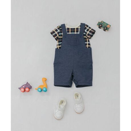 - 新品 ¥8800 組曲 kumikyoku クミキョク 2点 セットアップ カバーオール ロンパース 半袖Tシャツ カットソー 男の子 80 90cm ベビー 紺
