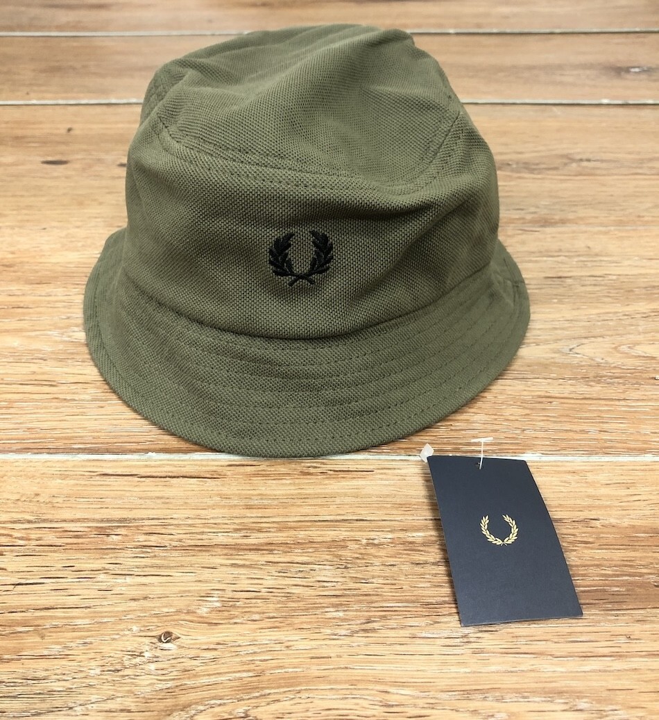 > 新品 未使用 フレッドペリー(FRED PERRY)ピケバケットハット(Pique Bucket Hat) S 帽子 カーキ E江EH1075-16
