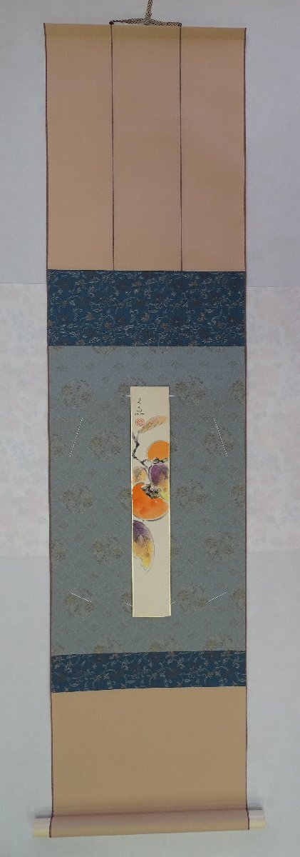 - ・作者: 中谷 文魚 ・画題: 柿 ・技法 :色紙絵直筆 ・色紙掛け軸 ・NO-R6-3-15.8