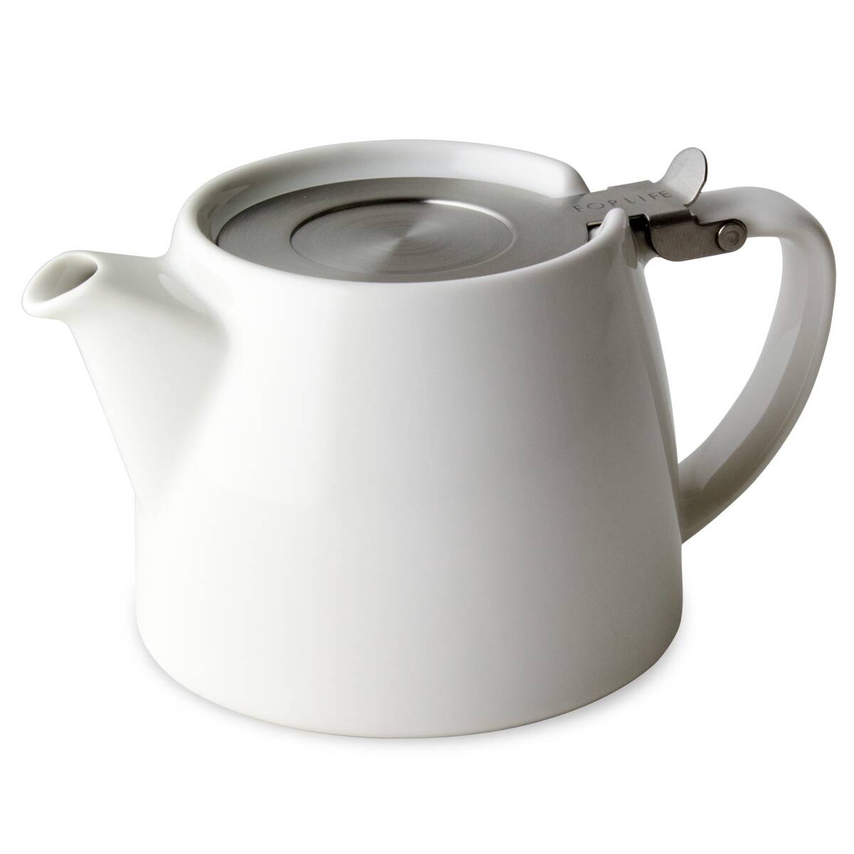 - フォーライフ(FOR LIFE) ティーポット 陶器 白 530ml 3杯用 茶こし付き 食洗機対応 蓋が落ちない 片手で注げる ホワイト スタ