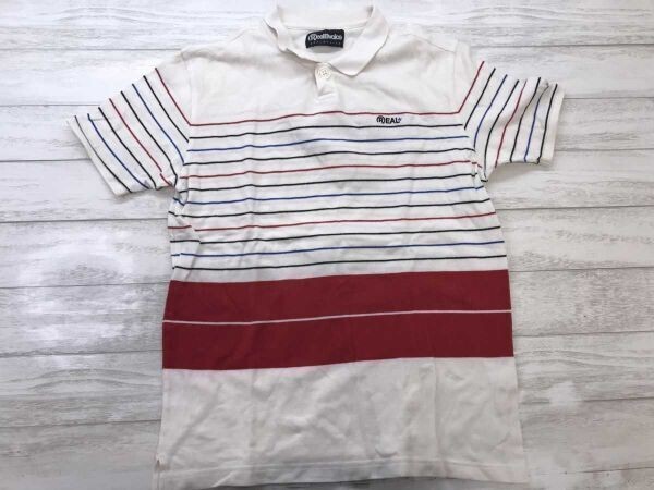 - リアルビーボイス RealBvoice 00s アメカジ ストリート サーフ 古着 パネルボーダー 鹿の子 半袖ポロシャツ メンズ コットン100% L 白