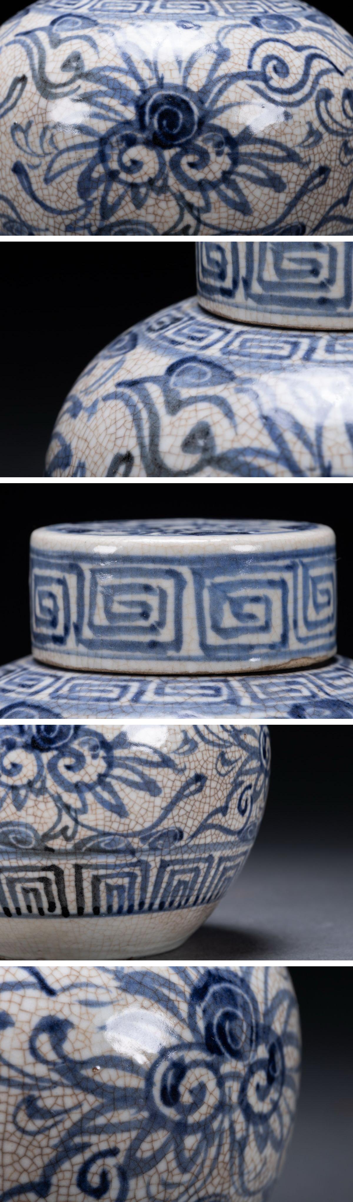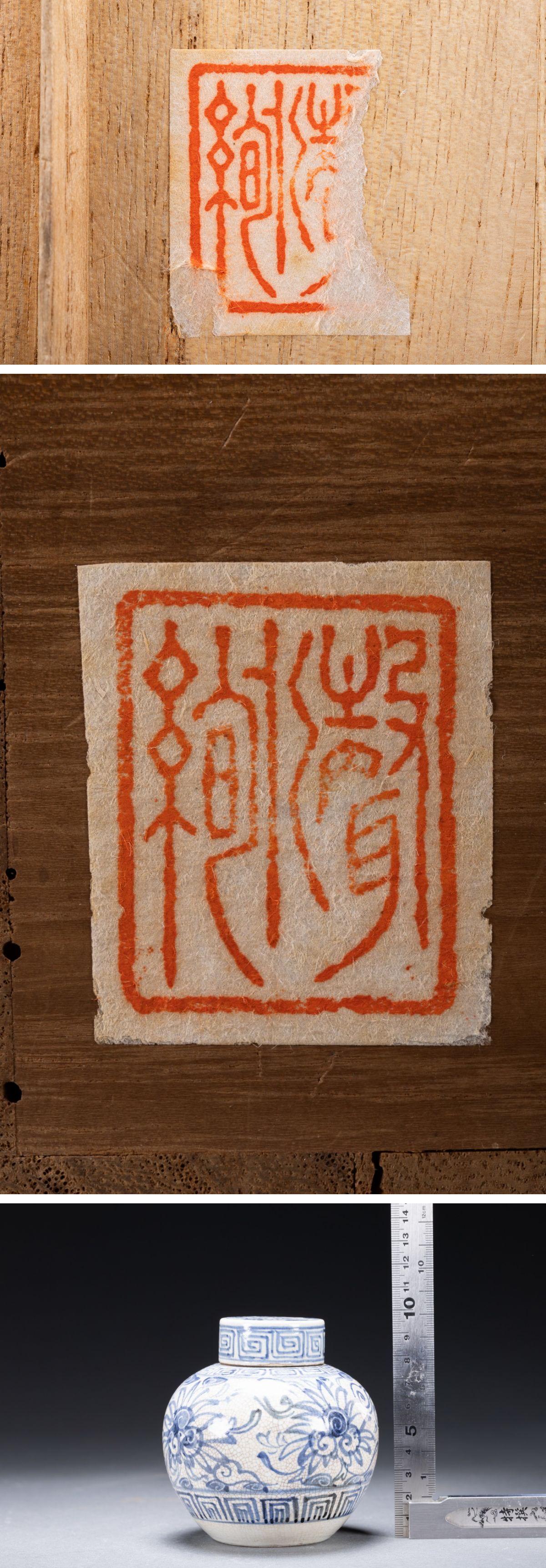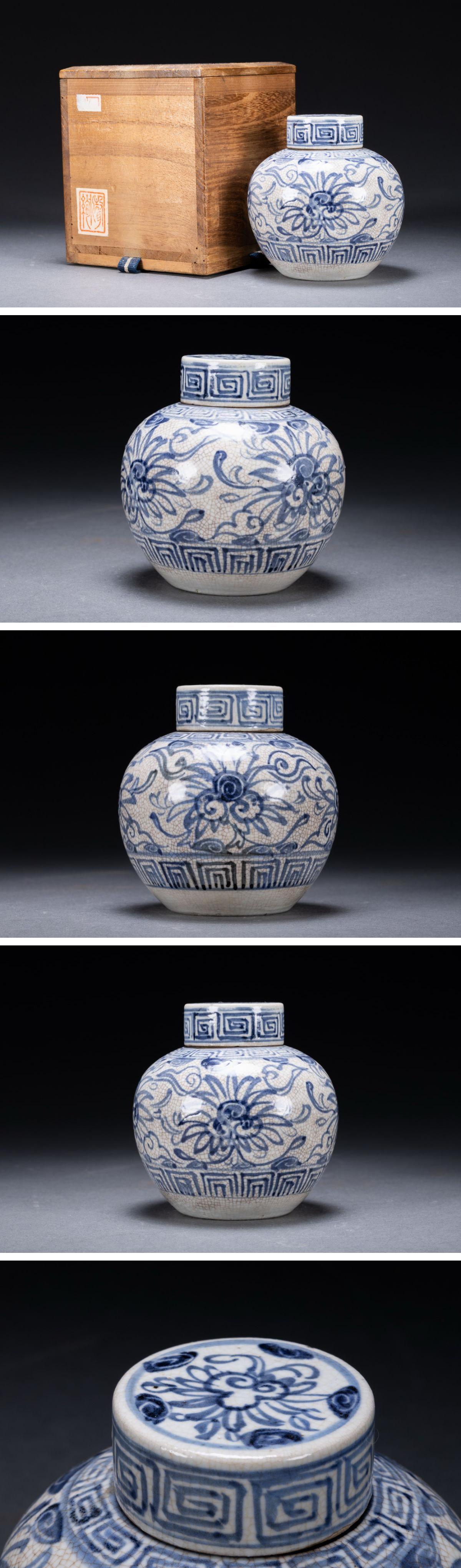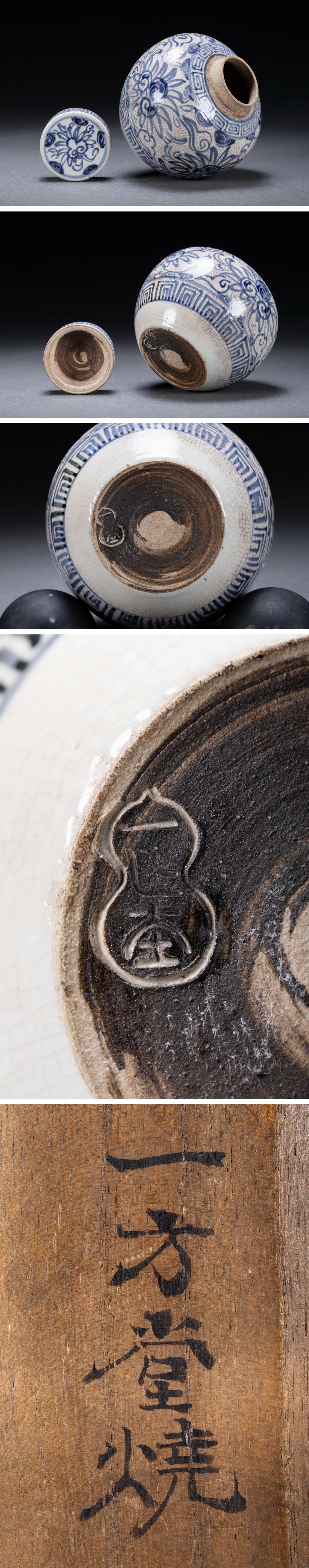 > 【雲錦】某有名オークション購入 時代物 一方堂 染付 染付茶葉入り 茶壷 共箱 古置物 古美術 時代コレクション7L10-115S1