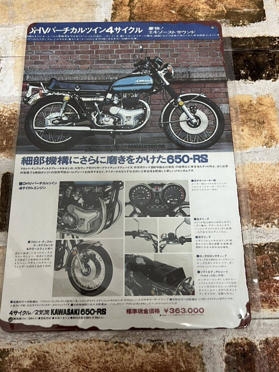 - カワサキ 650-RS W3 W650【1】 昭和レトロ ブリキ看板 プレート 旧車 ヘッドライト 650RS