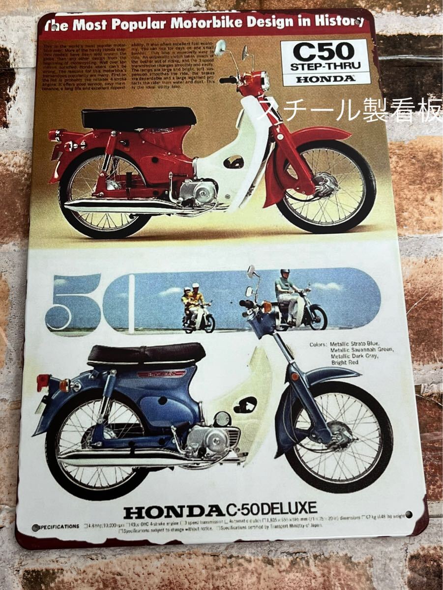 - ホンダ スーパーカブ 【6】 Monkey honda ブリキ看板 プレート 昭和レトロ ヴィンテージ加工