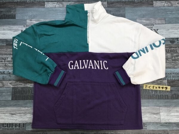 - レディース 配色切替 ハーフジップ レトロ プルオーバー カットソー M 紫緑白