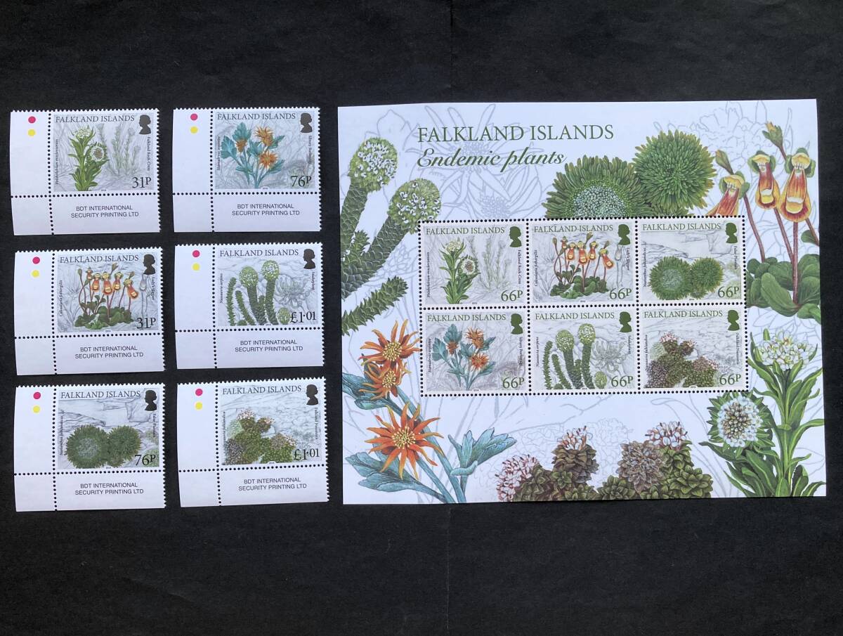 - 外国切手: フォークランド諸島切手 「フォークランド諸島固有の植物」小型シートと単片6種完 未使用
