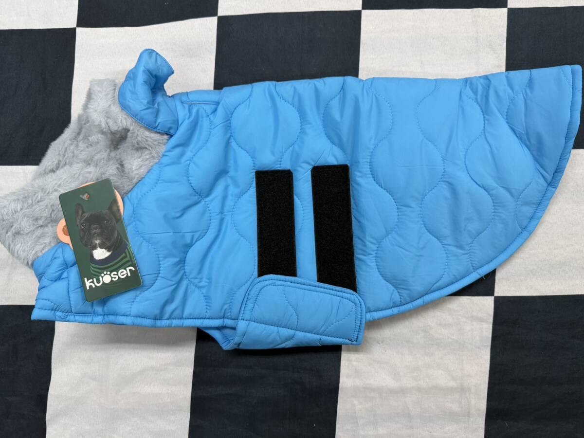 - Kuoser 犬防寒コート ブルー L ジャケット フリース襟 ハーネスリードホール マジックテープ締め 防水防風 軽量 快適オシャレ ドッグウエア