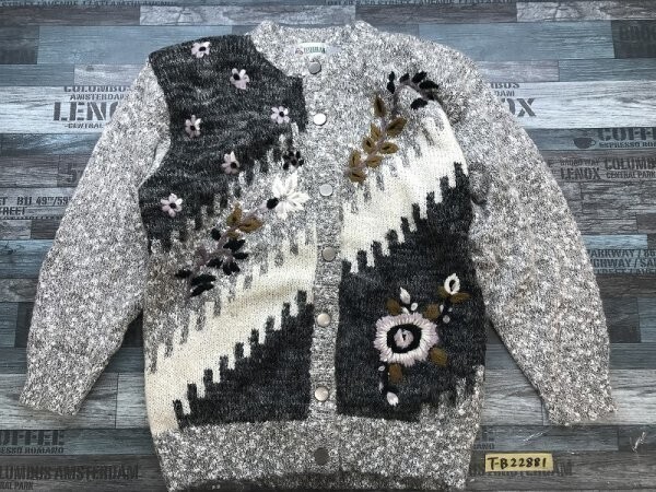 > TESHI HUANG レディース 肩パッド 花刺繍 裏地付き ニットジャケット グレー黒他