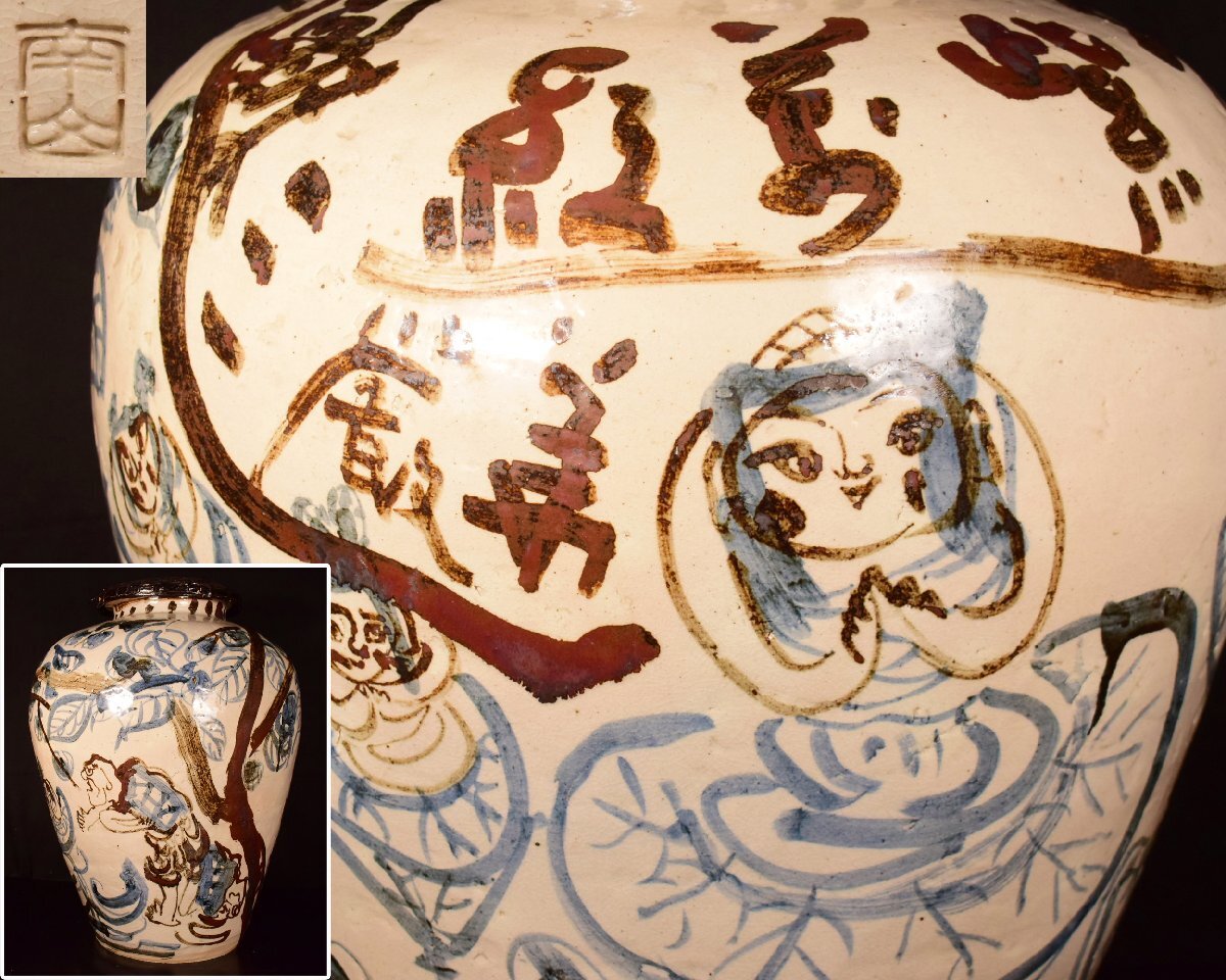 X685 【泉美】南山窯 清水公照「華厳三昧/千紫萬紅」蓋付 大壷 壺 飾壷 高さ約62.8cm