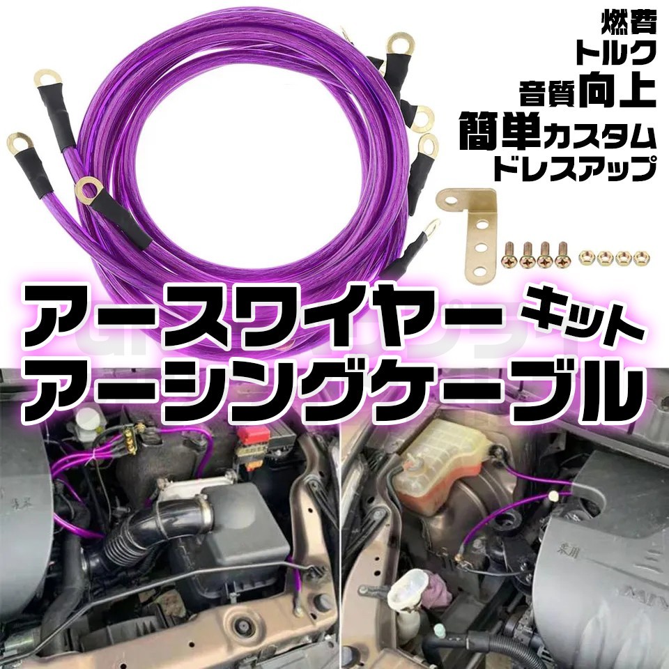 - 汎用 エンジン アーシング ケーブル ワイヤー キット トルク 音質 燃費 紫