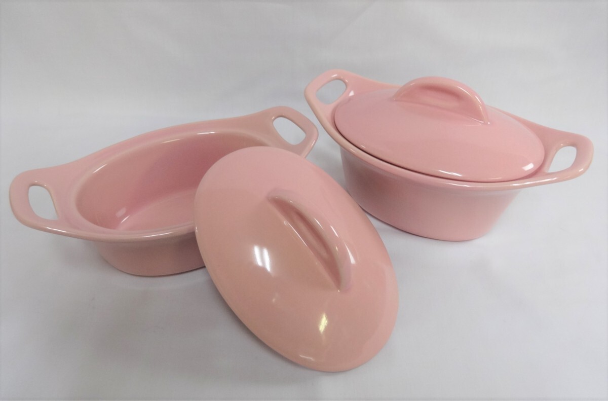 ▽未使用 MEYER マイヤー セラミックポット 2点セット ピンク レシピ本付き▽002105