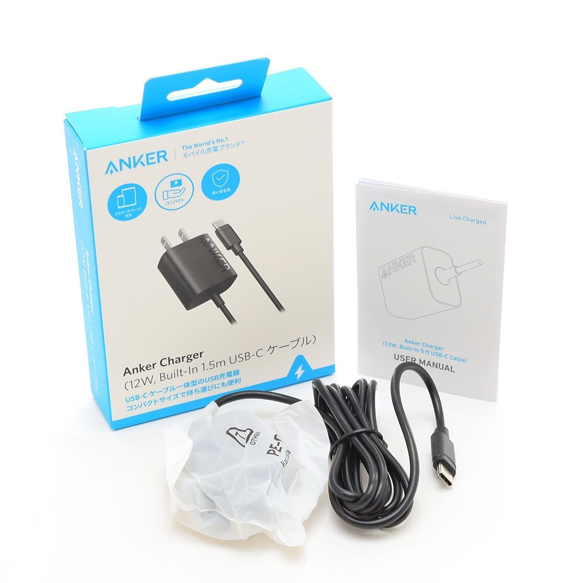 > ▽568511 【美品】Anker アンカー Anker Charger 12W Built-In USB-Cケーブル 1.5m A2059N11 動作確認済