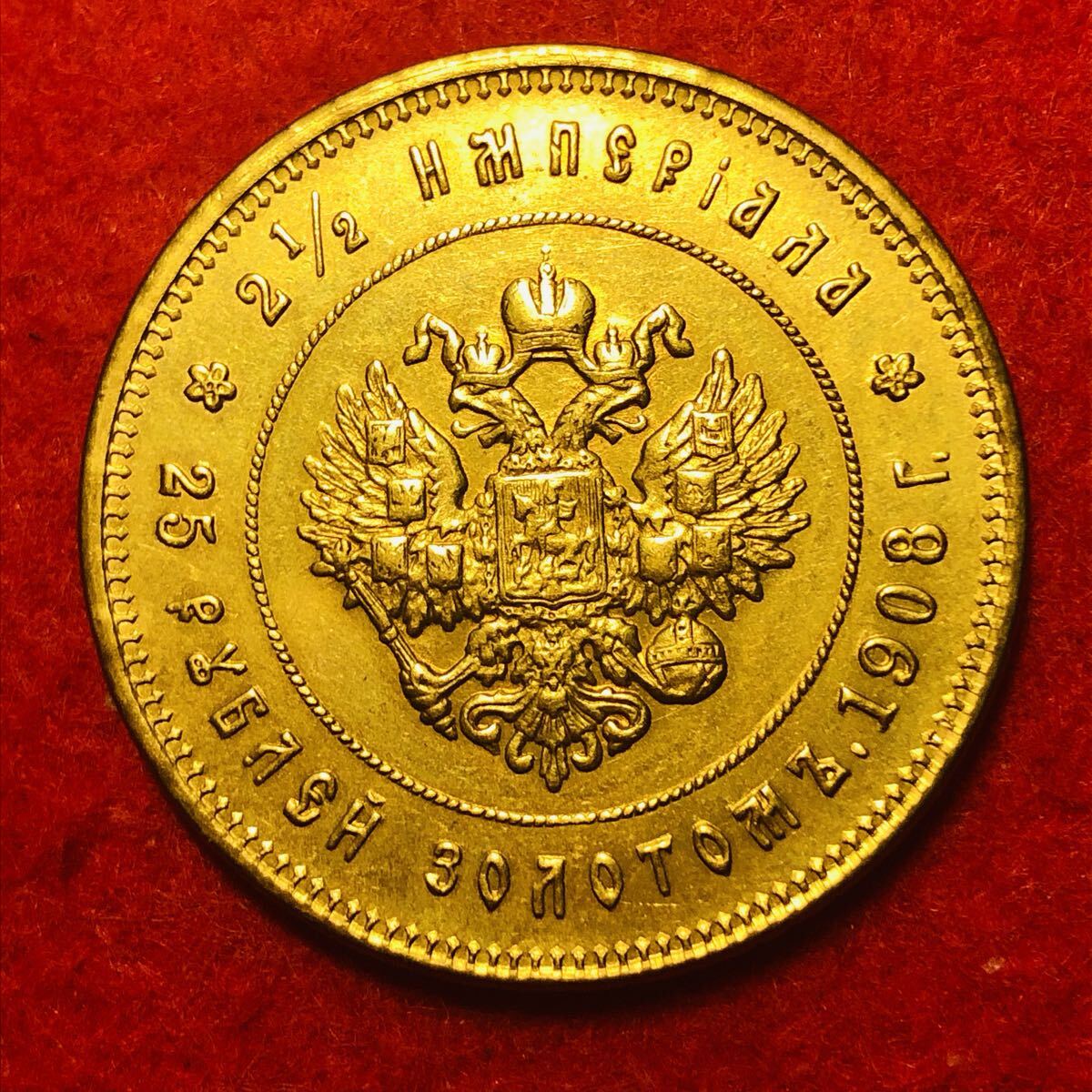 - 外国古銭 ロシア 1908年 25 ルーブル金貨 ニコライ2世 大型金貨 古銭 コレクション 蔵品 骨董品