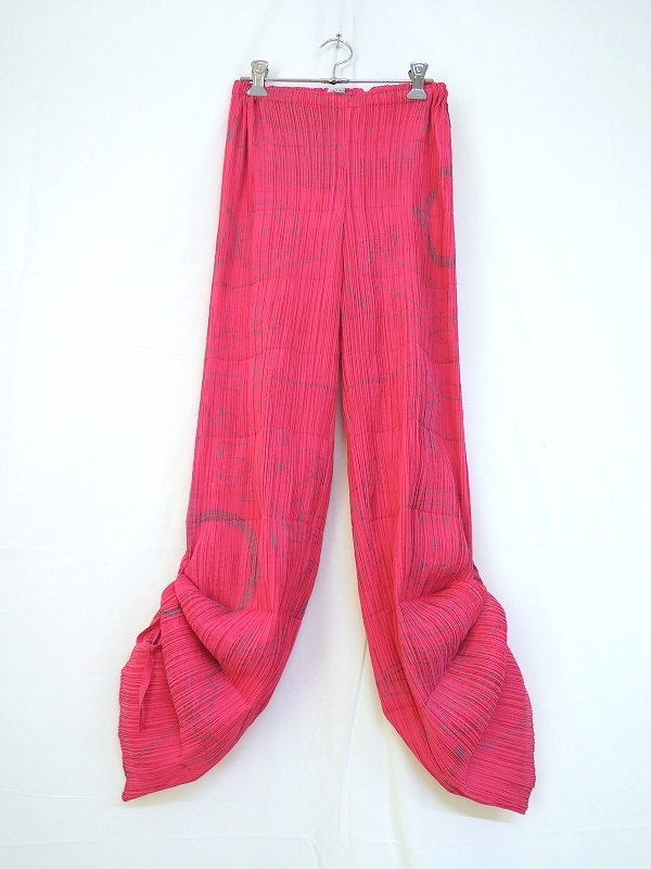 > ISSEY MIYAKE FETE イッセイミヤケフェット シワデザインパンツ 2 IF82FF229 ピンク ポリエステル100%
