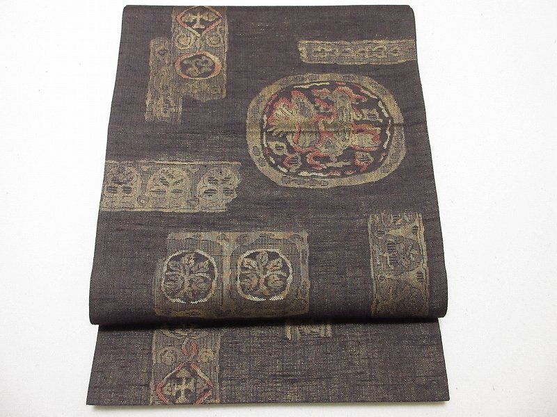 - ドークブア■六通柄袋帯 焼箔紬 黒地 三越扱い 極上の逸品 B32