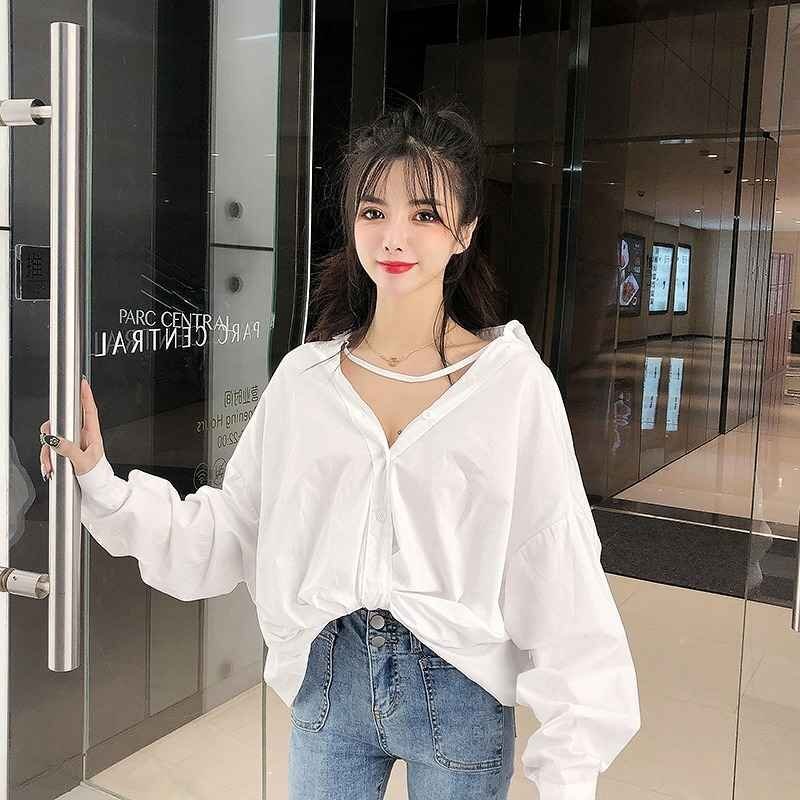 - 長袖シャツ 切り替え 体型カバー 着痩せ 無地 sweet系